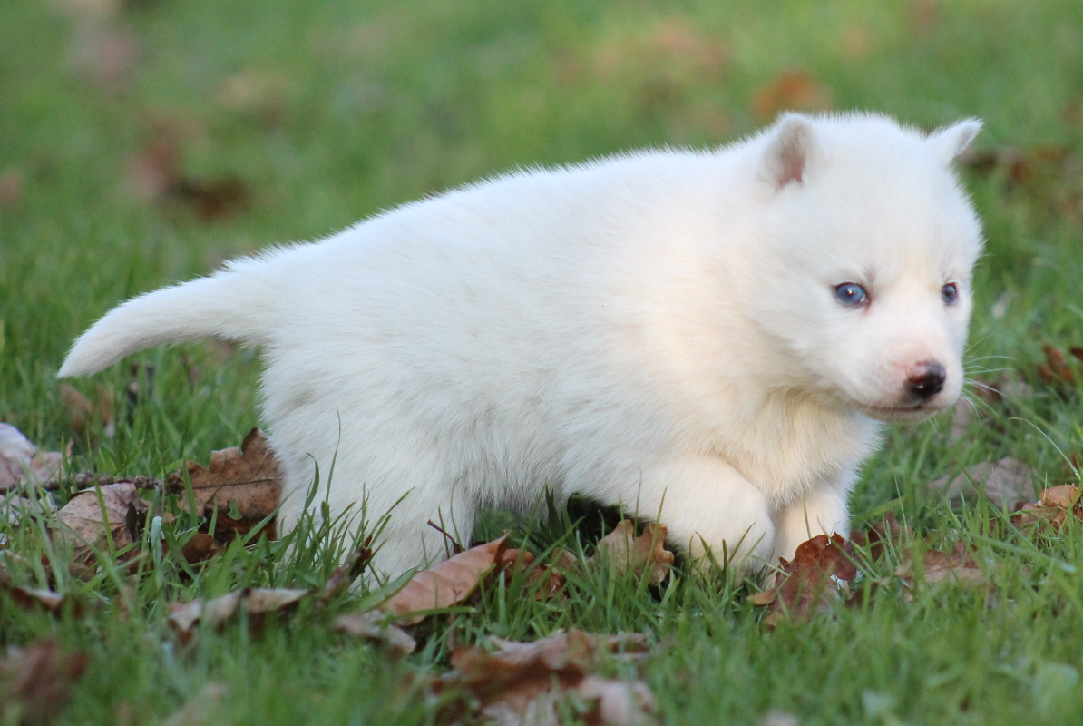Mâle blanc pur aux yeux bleus à vendre.