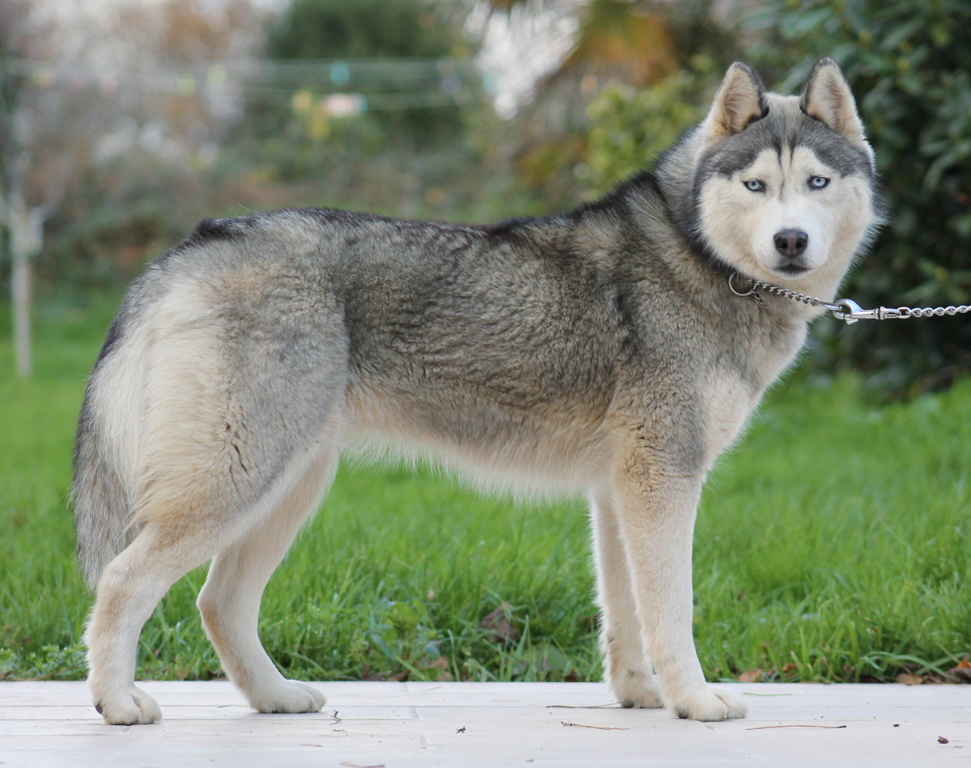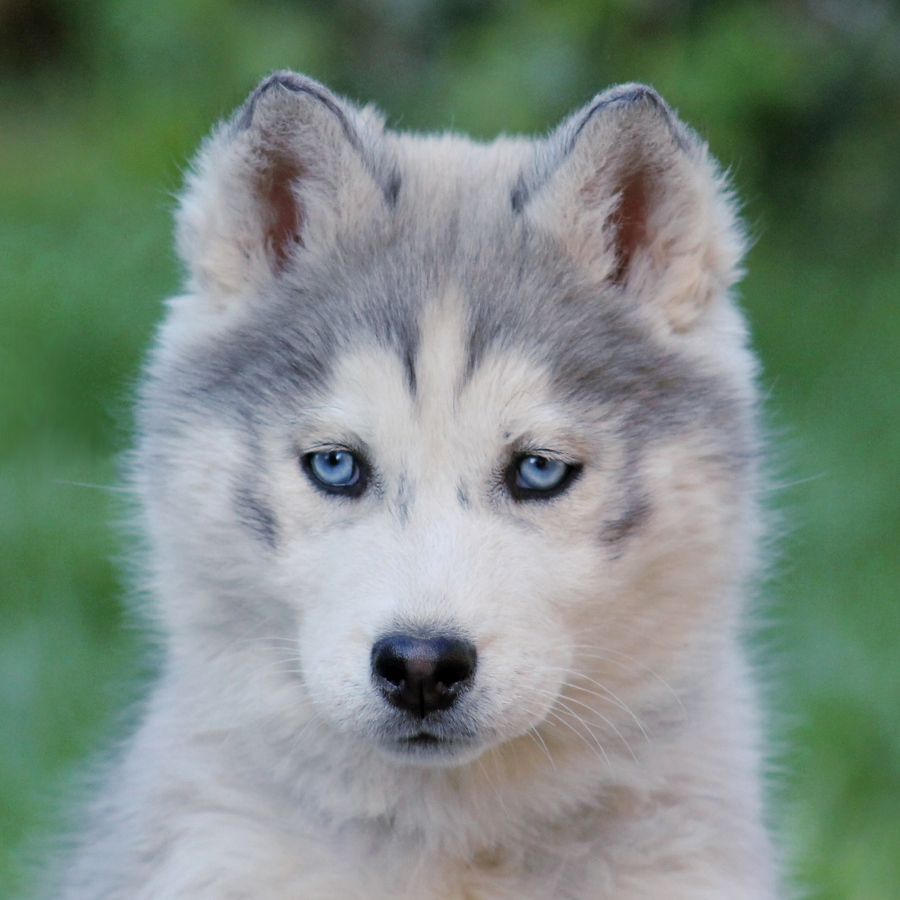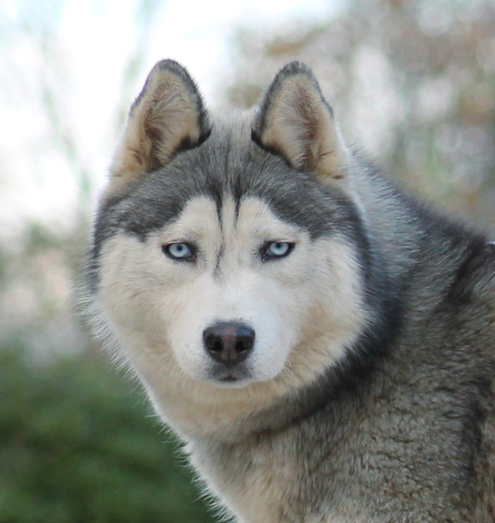 Robe : Gris loup et blanc - yeux bleus