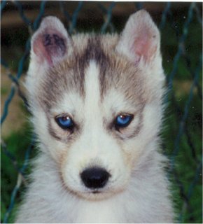 Mâle gris et blanc, yeux bleus.