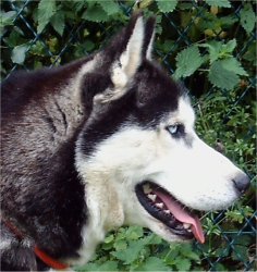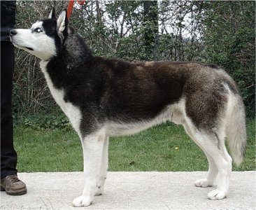 Mâle noir et blanc, yeux bleus.