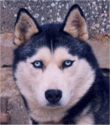 Femelle noire et blanche yeux bleus. 55 cm.